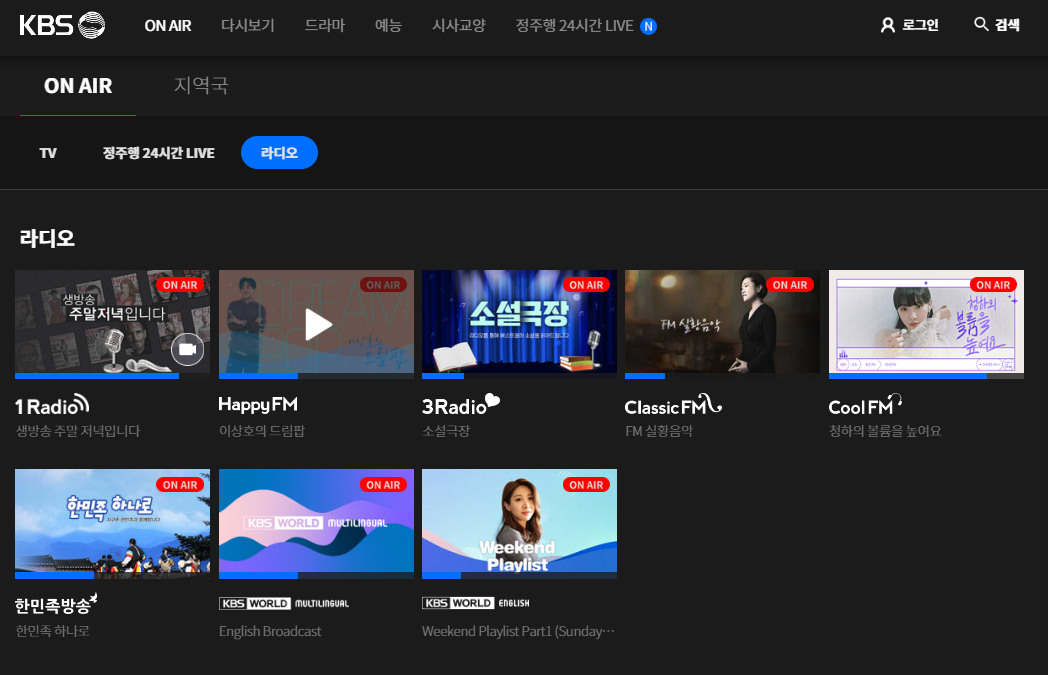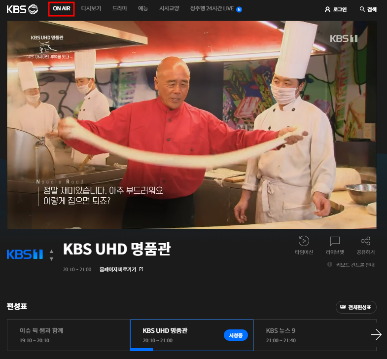 ▶ KBS 온에어 상단에 있는 'ON AIR' 클릭하시면 실시간으로 방송을 시청하실 수 있습니다.